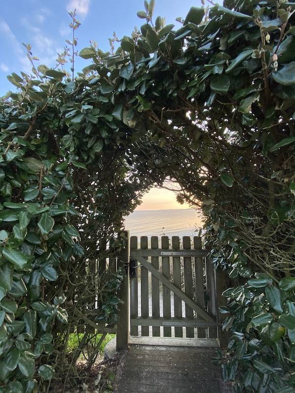 Vous cherchez une location de maison sur la plage de Kermor à Sainte-Marine ? La Maison de la Plage est l'une des rares adresses du Pays Bigouden à offrir un accès direct et privé à cette plage de 4 km, classée parmi les plus belles du Finistère. Un portillon au fond du jardin clos donne sur le sentier côtier GR34 qui longe la dune ; comptez 30 secondes à pied jusqu'au sable fin. Pas de route à traverser, pas d'escalier escarpé. Pieds nus depuis la terrasse en teck, vous êtes les pieds dans l'eau.